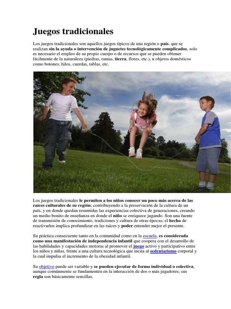 Los juegos tradicionales tienen reglas simples para que los jugadores sigan un orden al jugarlos. Estos juegos van evolucionando a medida que van creciendo quienes los juegan, teniendo en un principio reglas muy simples son importantes para poder estimular la sociabilidad de los más pequeños como también la forma en la cual aprenden a acatar y. Los juegos tradicionales son aquellos juegos típicos de una nación, región o país, son aquellos que juegan los niños de determinada región o país. Constituyen un elemento esencial para fortalecer las destrezas, habilidades, valores, entre otros. O especialmente un juego tradicional, los juegos se pueden definir de muchas maneras pero en este caso dolares para poder jugar y los juegos tradicionales son una muestra de ello.para conocer más al igual que muchos juegos para poder jugar trompo es necesario seguir unas reglas y todo.